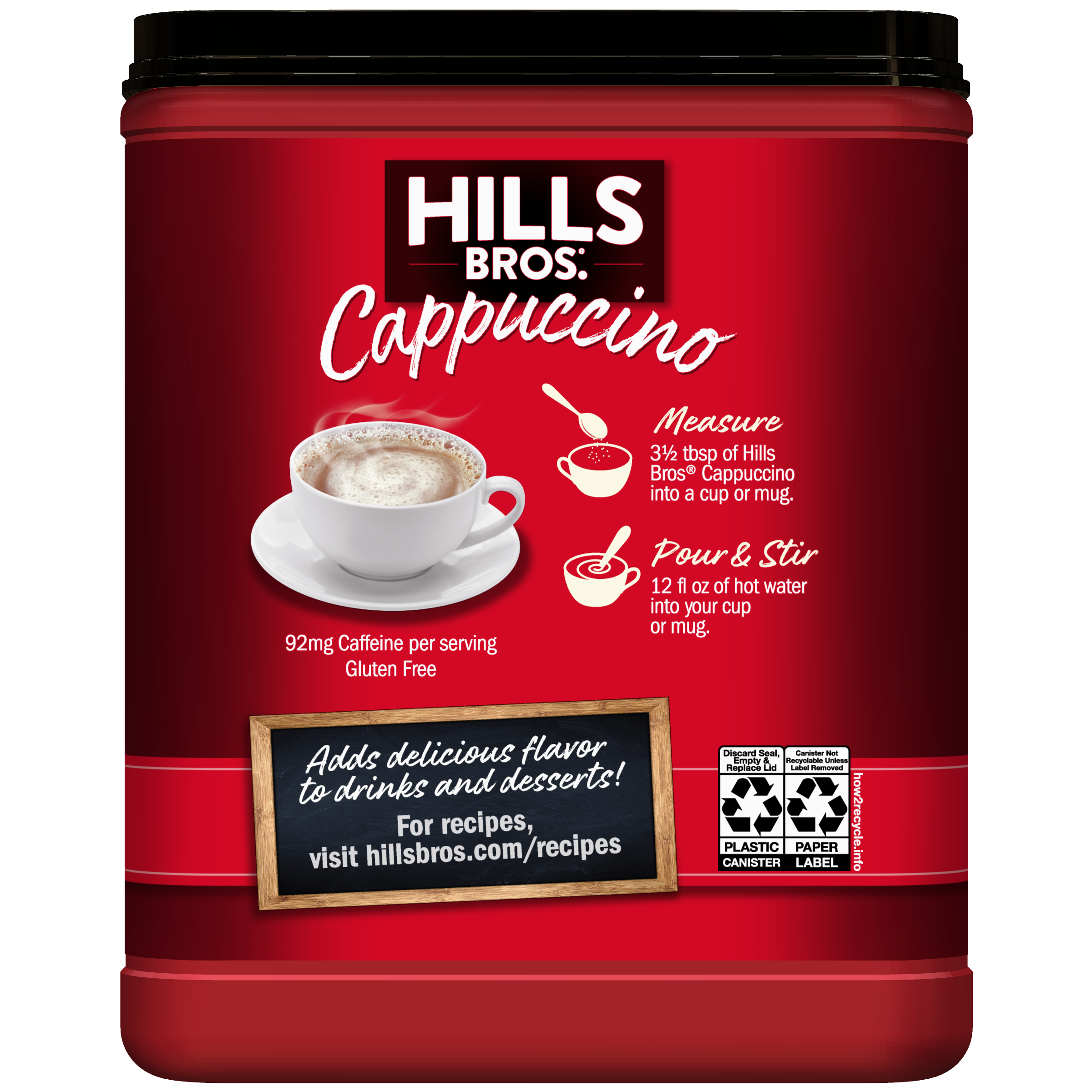 - INSTANT CAPPUCCINO - When you're in the mood for a cappuccino, look no further than Hills Bros.® instant mix. Just add water.